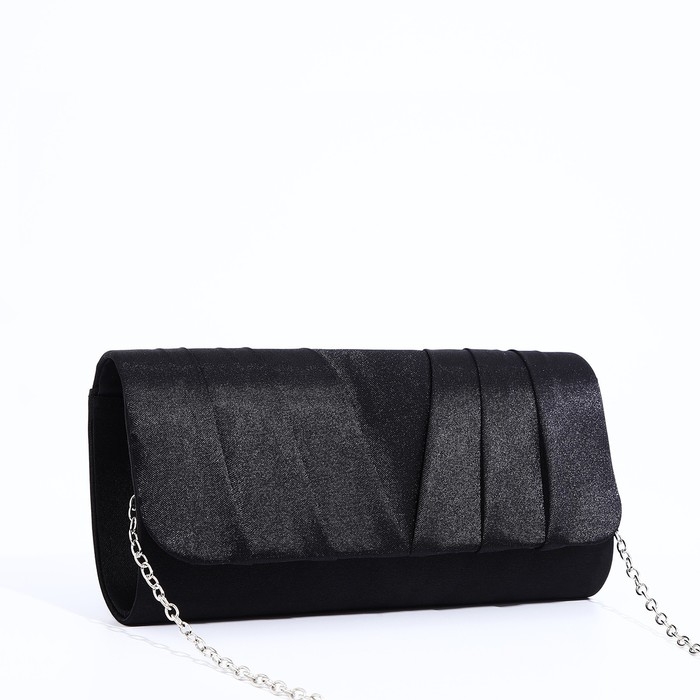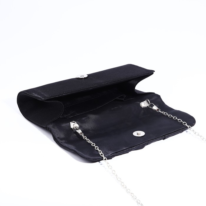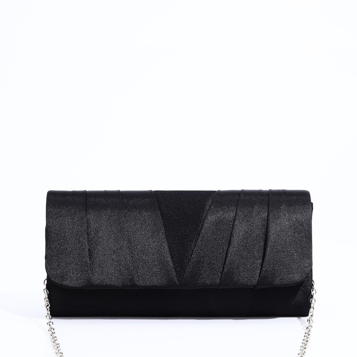 Клатч, отдел на клапане, длинная цепь, цвет чёрный