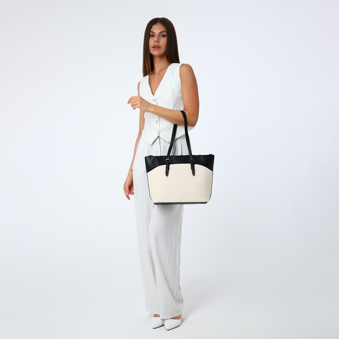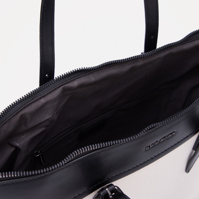 Сумка-шопер женская на молнии, David Jones, наружный карман, бежевый/чёрный