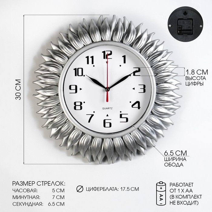 Часы настенные, интерьерные "Подсолнух", d-30 см, циферблат d-17.5 см