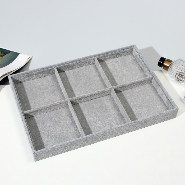 Подставка для украшений 6 ячеек, флок, 35×24×3, цвет серый