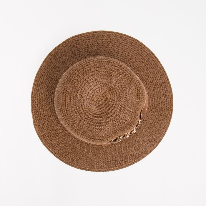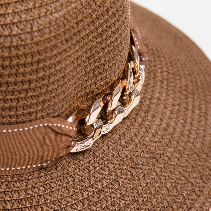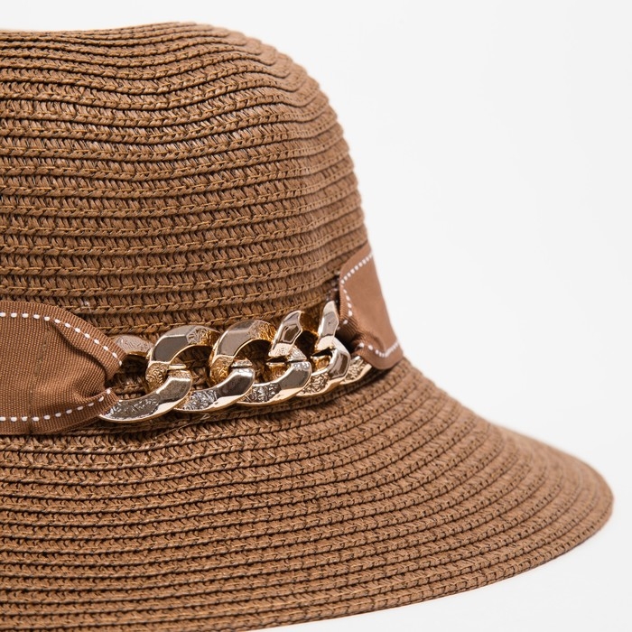 Шляпа женская с цепочкой MINAKU цвет коричневый, размер 56-58
