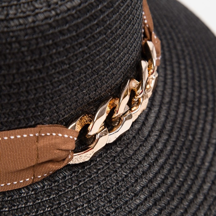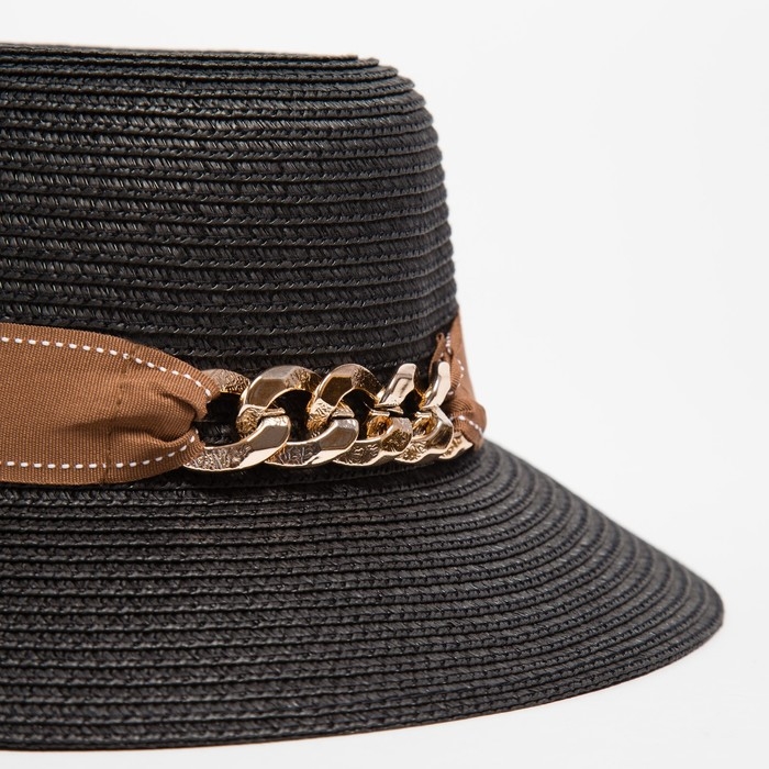 Шляпа женская с цепочкой MINAKU цвет чёрный, р-р 58
