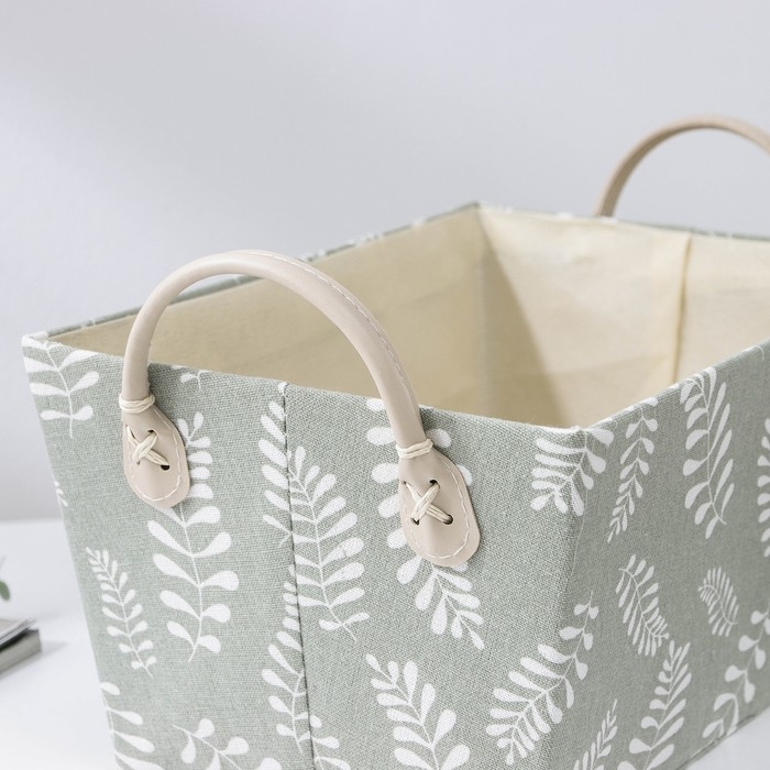 Корзина для хранения с ручками Доляна «Листья», 31,5×21×21 см, цвет серо-зелёный