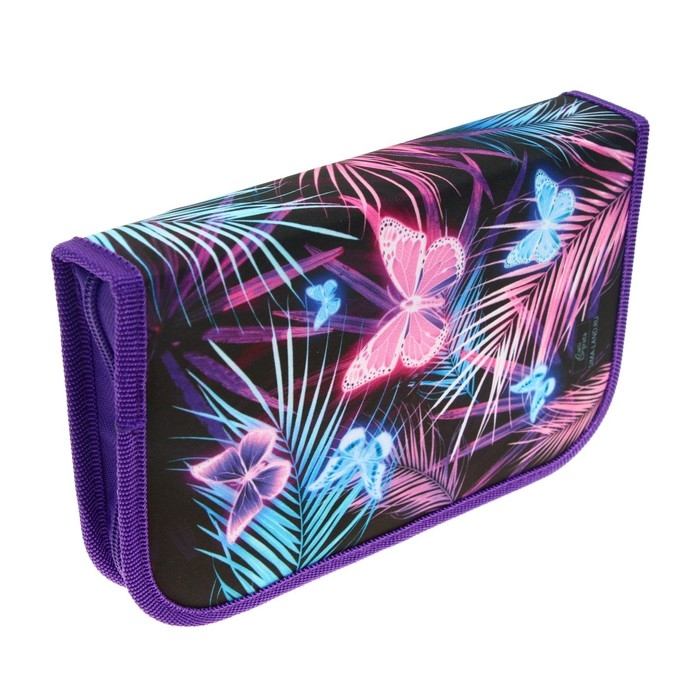 Пенал 1 секция, 130 х 210 х 40 мм, 2 откидные планки, тканевый, Calligrata TOP, Content "Бабочки"