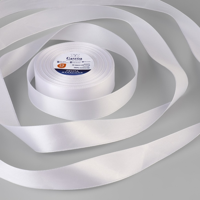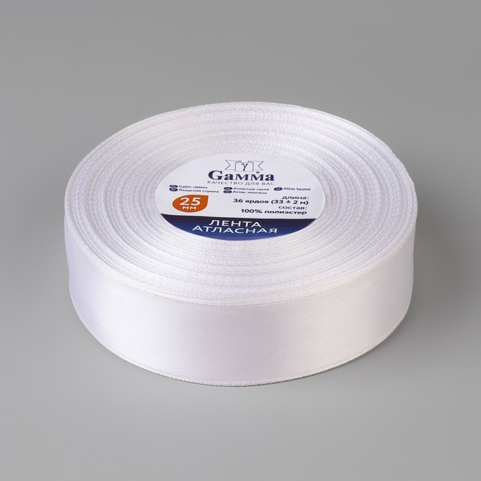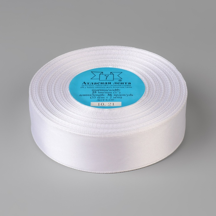 Лента атласная, 25 мм × 33 ± 2 м, цвет белый №001