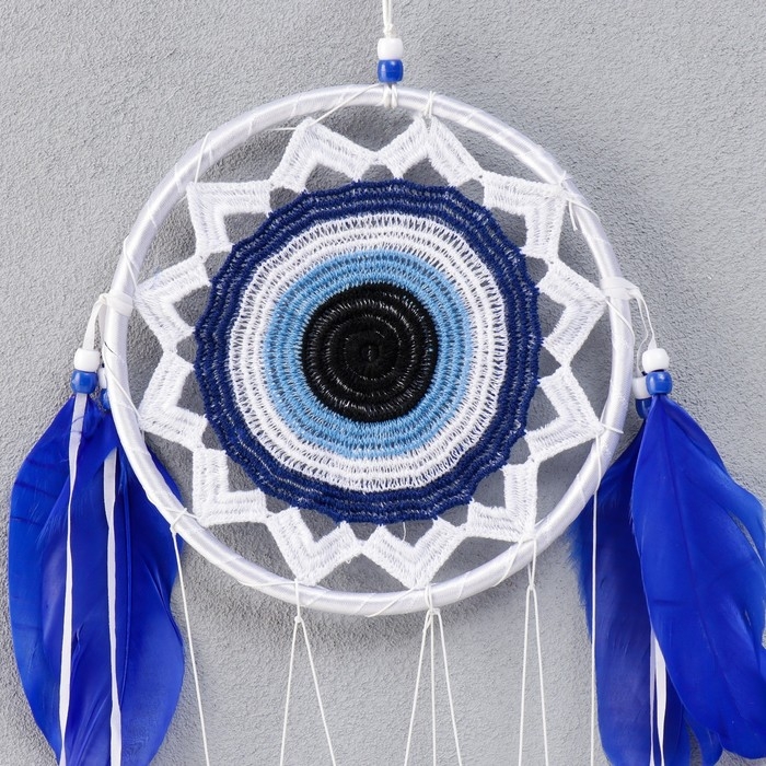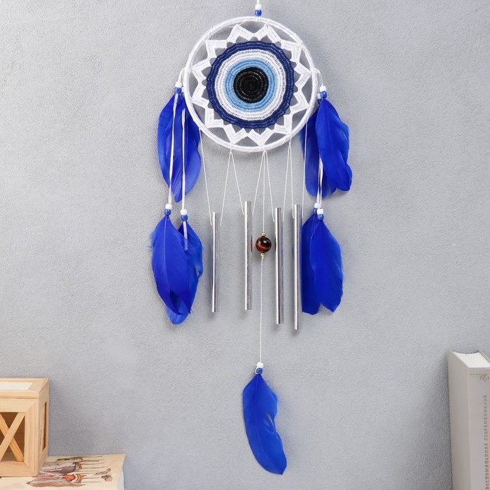 Ловец снов с музыкой ветра "От сглаза" 4 трубки синие перья 61х16 см