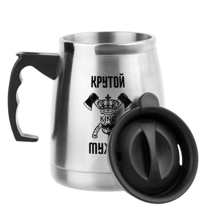 Термокружка, 500 мл, Camping "Крутому мужику", сохраняет тепло 2 ч, 13 х 13.5 см