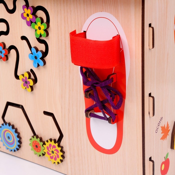 - Моторики: бизиборд помогает ребёнку развивать мелкую моторику, координацию движений, ловкость.