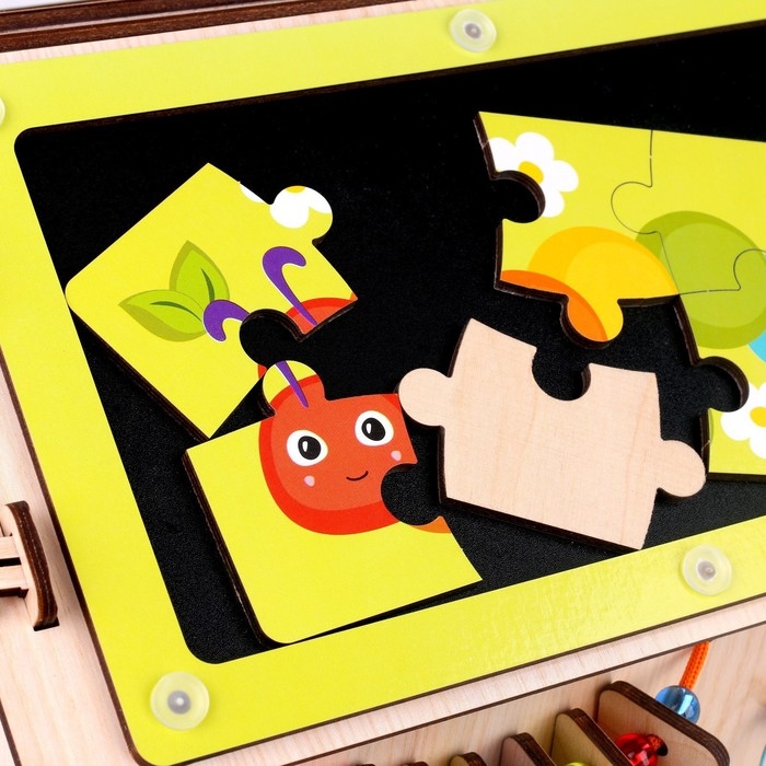 - Бизиборд можно использовать как самостоятельно, так и в сочетании с другими развивающими игрушками.