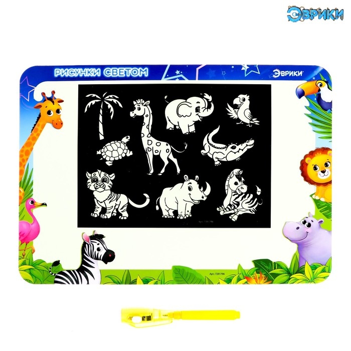С набором для рисования ребёнок научится рисовать не только простым маркером, но и светом! Малыш будет создавать картинки, используя трафареты, или придумает собственные сюжеты.