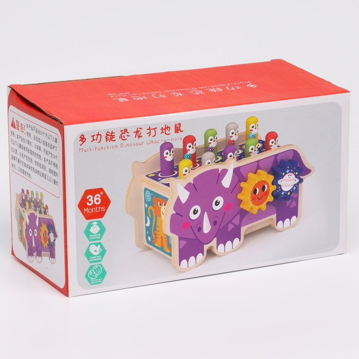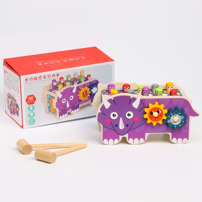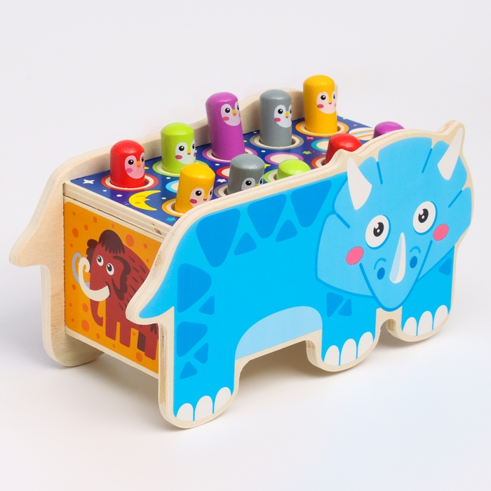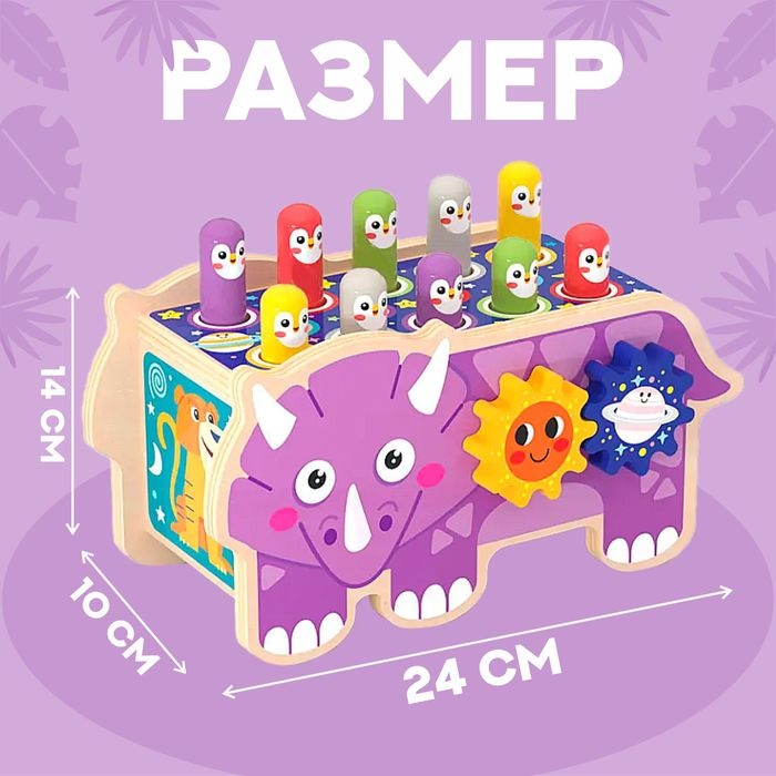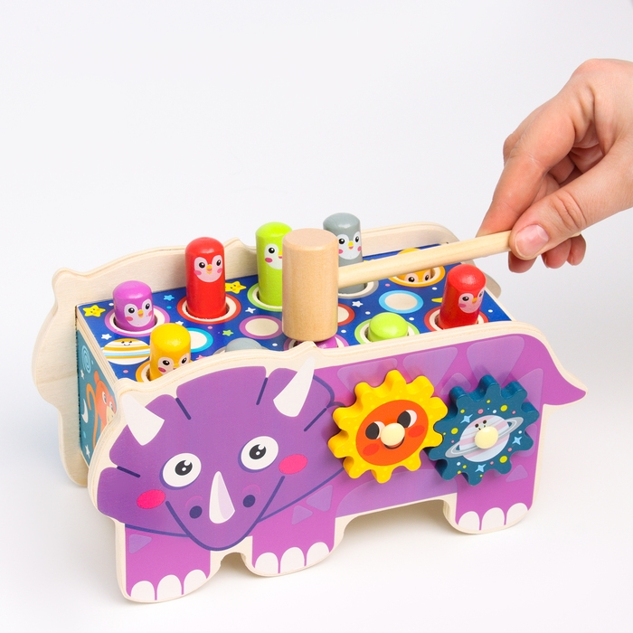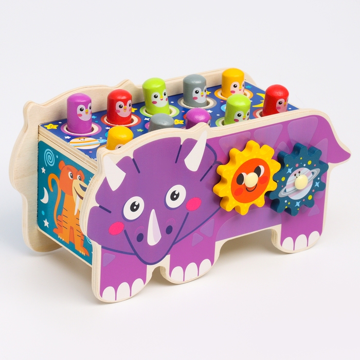 Детский логический центр двусторонний «Носорог» 2 в 1 (стучалка, крутилки) 24 × 10 × 14 см
