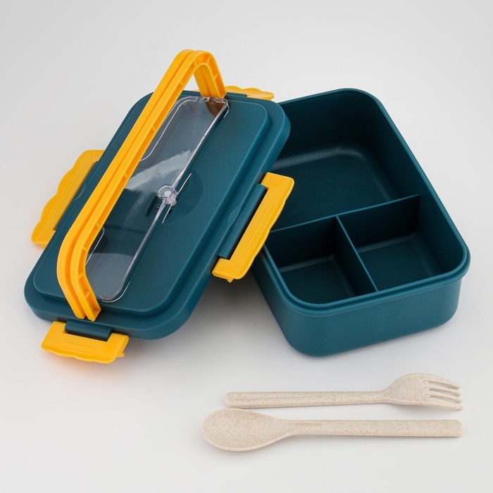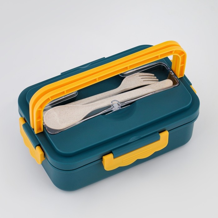Ланч-бокс, 800 мл, с приборами, 12 х 7.6 х 20 см, бирюзовый
