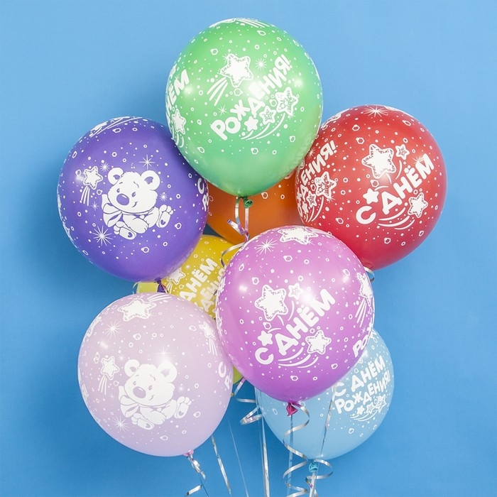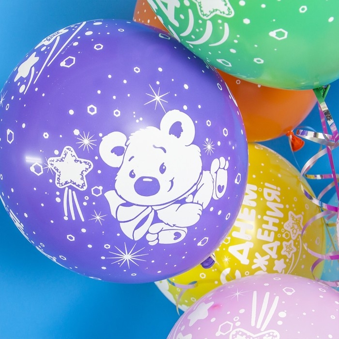 Шар латексный 12" «С ДР! Плюшевый мишка», МИКС, 5 ст., набор 25 шт.