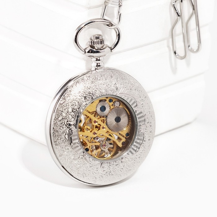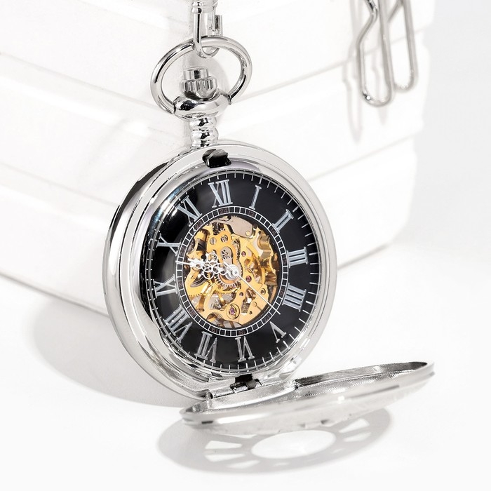 Часы карманные механические "Скелетон", d циферблата-4 см, 5.5 х 4.5 см