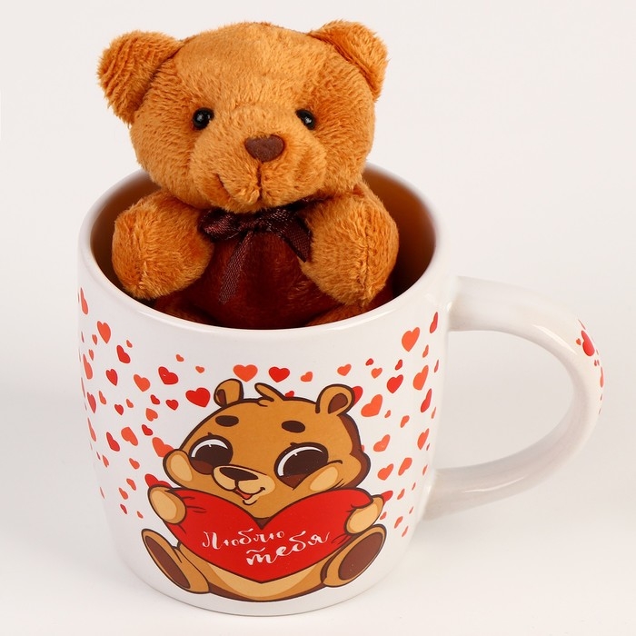 Набор «Люблю тебя», игрушка в кружке, мишка, цвет МИКС