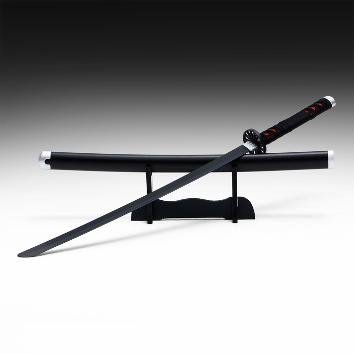Сувенирное оружие "Катана Танзи" 75 см, клинок 48 см, чёрная, на подставке