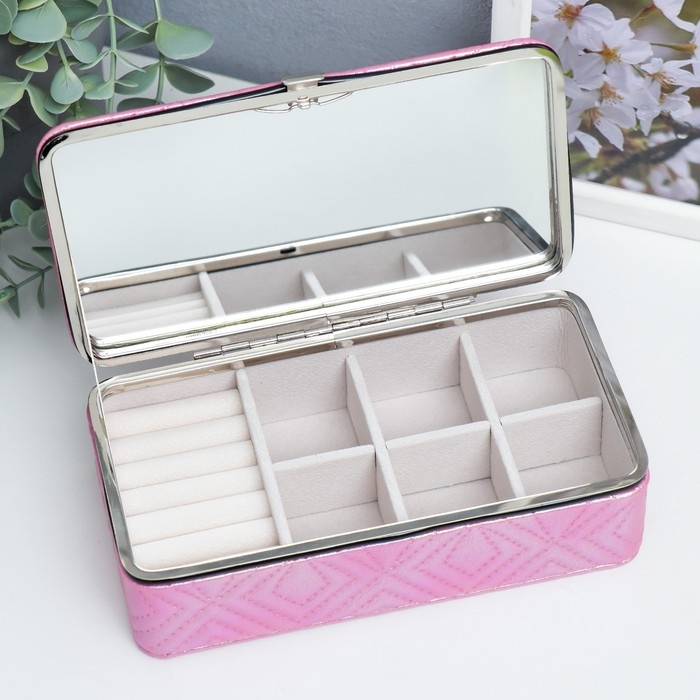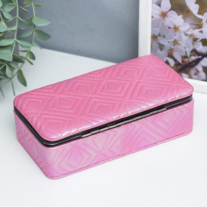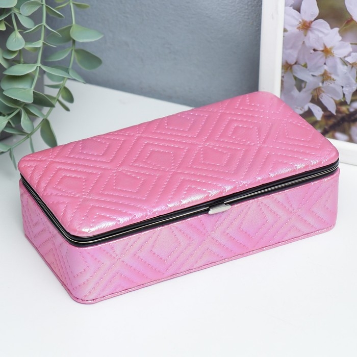 Шкатулка кожзам для украшений "Узор из ромбов. Розовый перламутр" 6х9,8х18,5 см