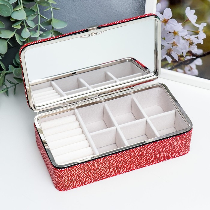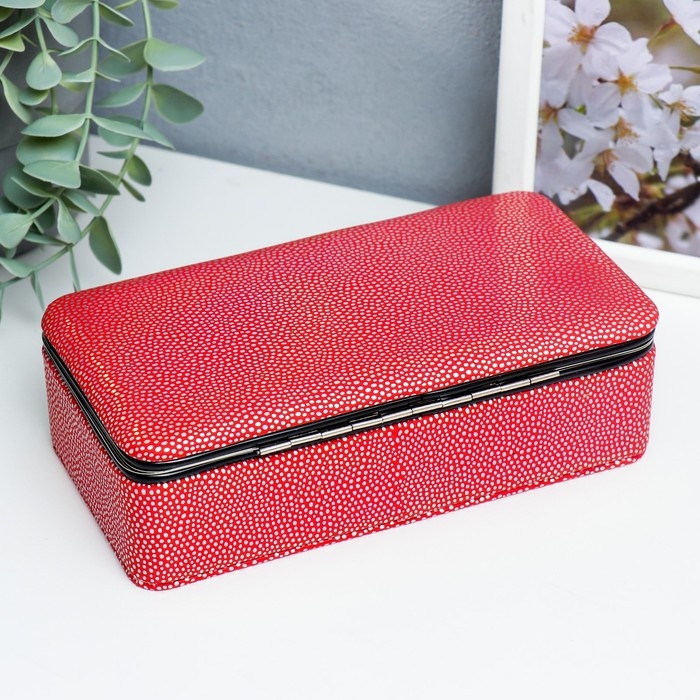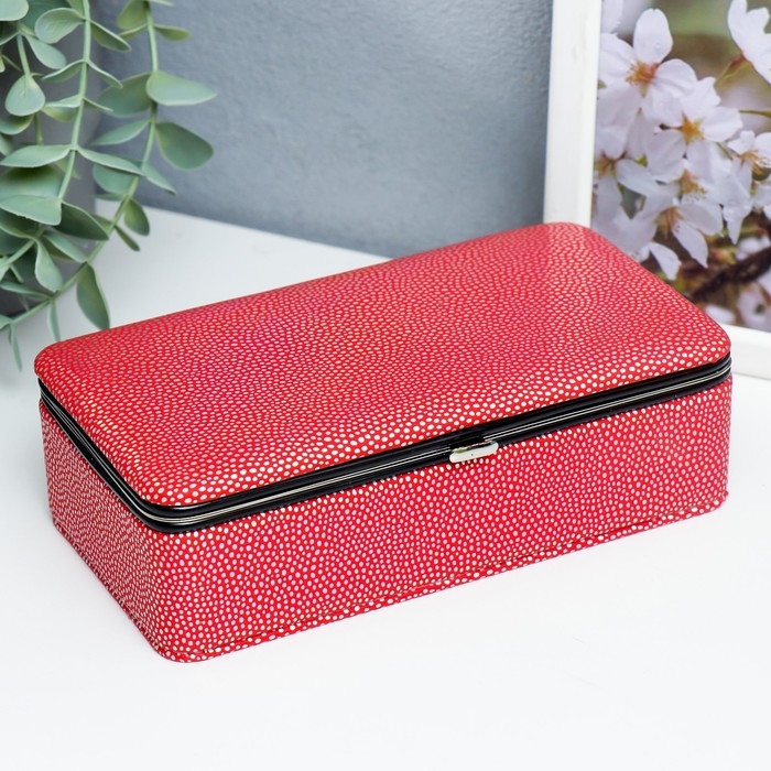 Шкатулка кожзам для украшений "Маленькие пятнышки. Красная голография" 6х9,8х18,5 см