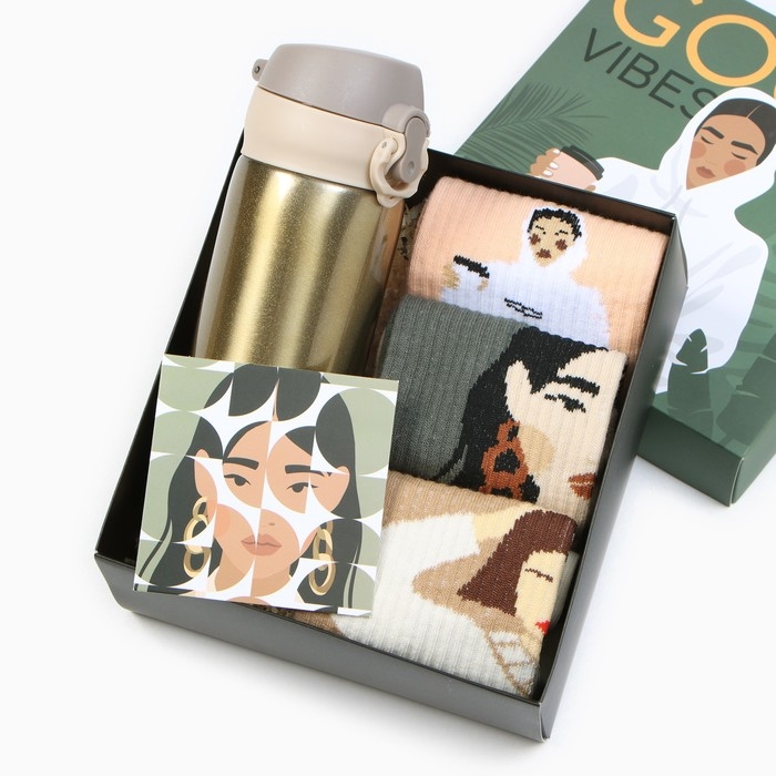Подарочный набор термос и носки 3 пары KAFTAN "Good", р. 36-39 (23-25 см)