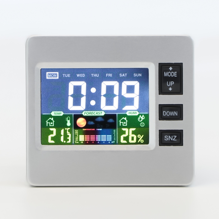 Часы электронные настольные с метеостанцией, с календарём и будильником, 7.7 х 8.6 см