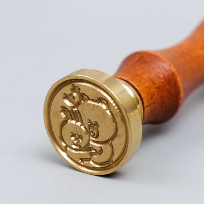 Печать для сургуча с деревянной ручкой "Обнимашки - медведь и зайчик" 9х2,5х2,5 см