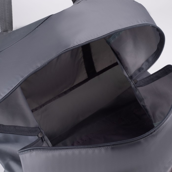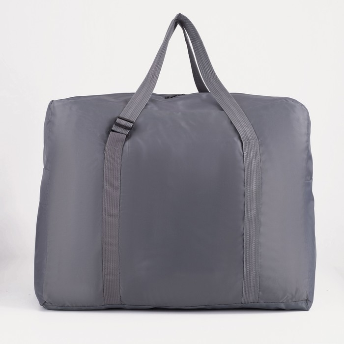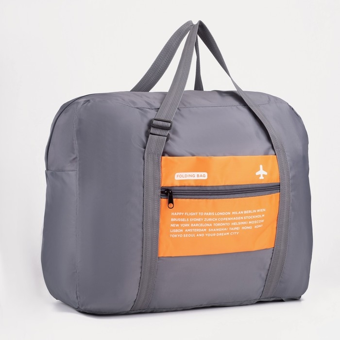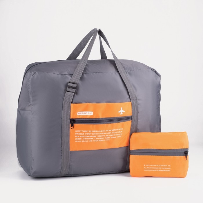 Сумка дорожная на молнии, складная в косметичку, наружный карман, держатель для чемодана, цвет серый/оранжевый