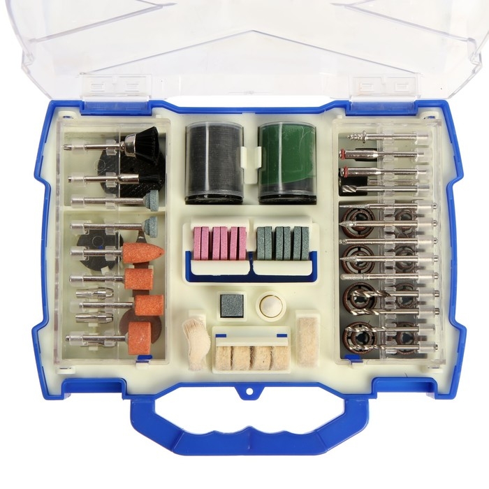 Набор мини-насадок для гравера ТУНДРА, круги, щетки, шарошки, диски, паста, 3.2 мм, 100 шт.
