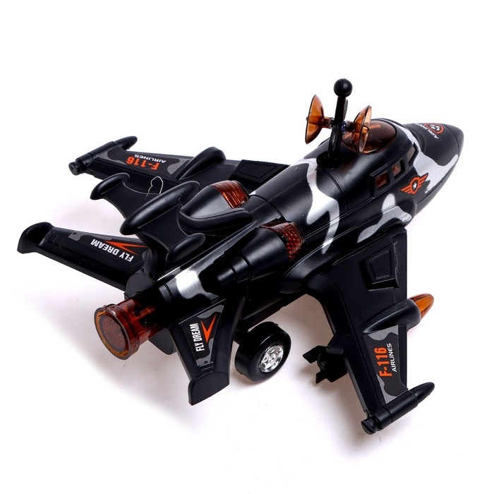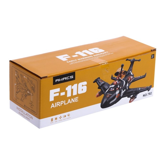 Самолет F-116, свет и звук, работает от батареек, цвет чёрный