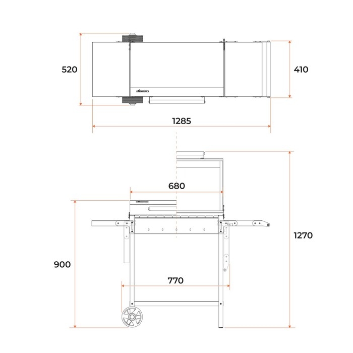 Мангал "MAH 203" 128,5 х 52 х 90,1 см, 2 мм, колеса, боковые полки, крышка