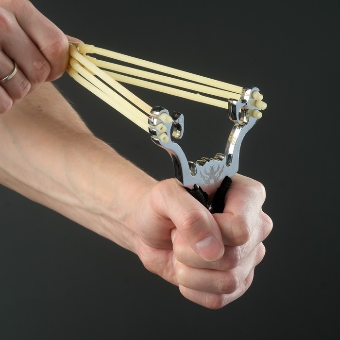 Рогатка металлическая "Взгляд дракона" в текстильной оплётке, 17 см, чёрная