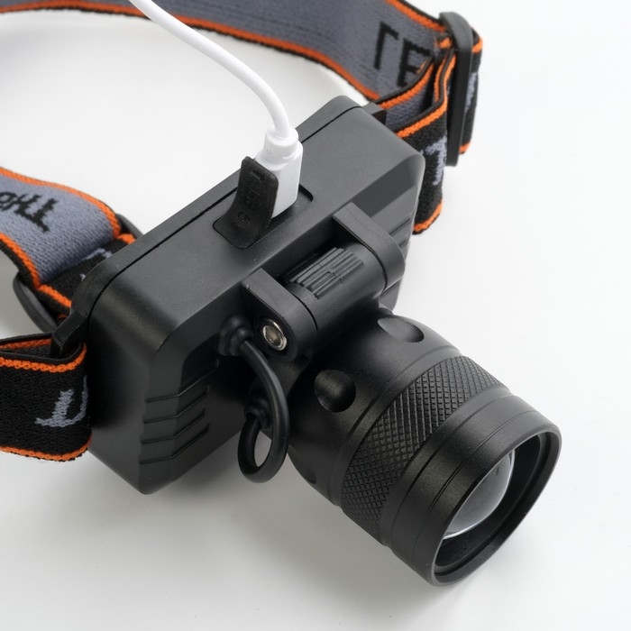Фонарь налобный аккумуляторный, 10 Вт, 1000 мАч, 200 лм, LED, IPX3