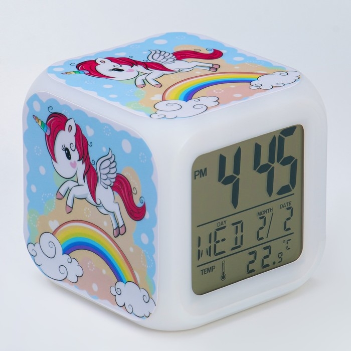 Часы - будильник электронные детские "Единорог" настольные, с подсветкой, 8 х 8 см, ААА