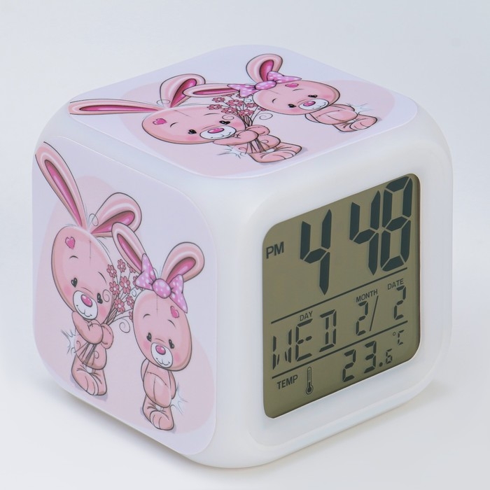 Часы - будильник электронные детские "Зайка" настольные, с подсветкой, 8 х 8 см, ААА 7533414
