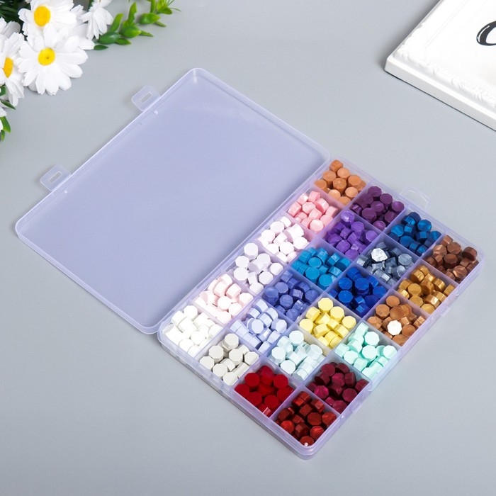 Набор сургуча "Светлые и тёмные цвета" матовый+перламутр 24 цвета 19х13х2 см
