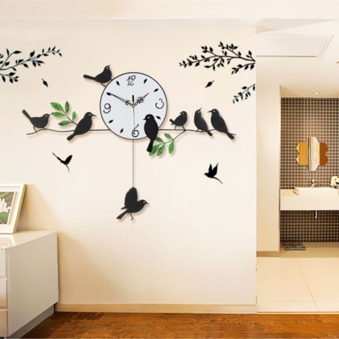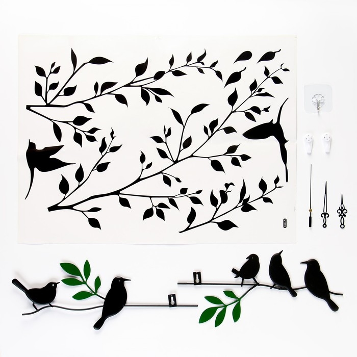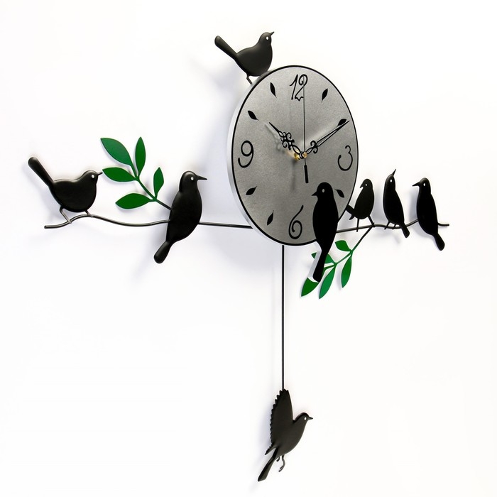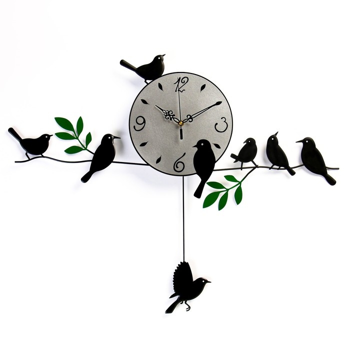 Часы настенные интерьерные "Птички на веточках", бесшумные, 74 х 52 см