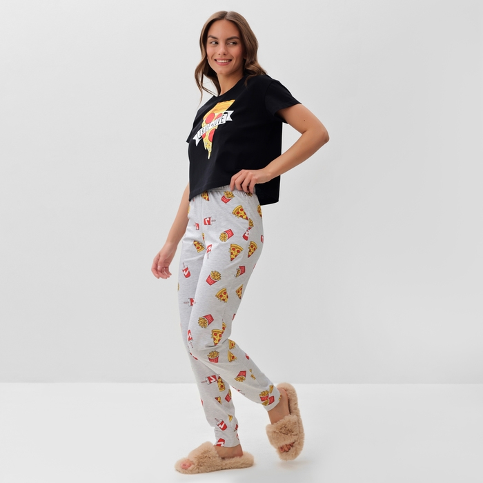 Пижама женская (футболка и брюки) KAFTAN Pizza р. 52-54, черный