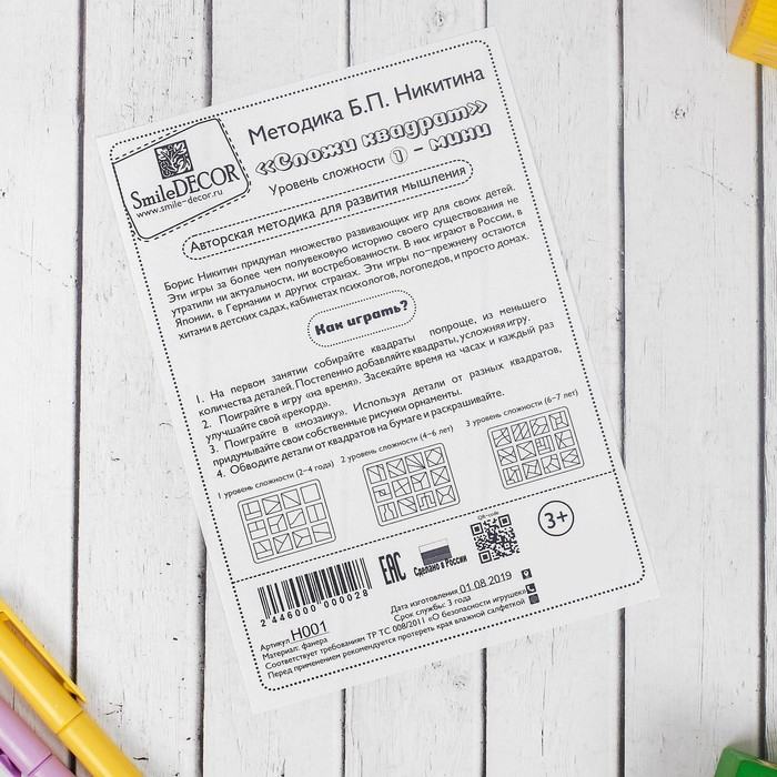 «Сложи квадрат» Б.П.Никитин, 1 уровень (мини), цвета МИКС