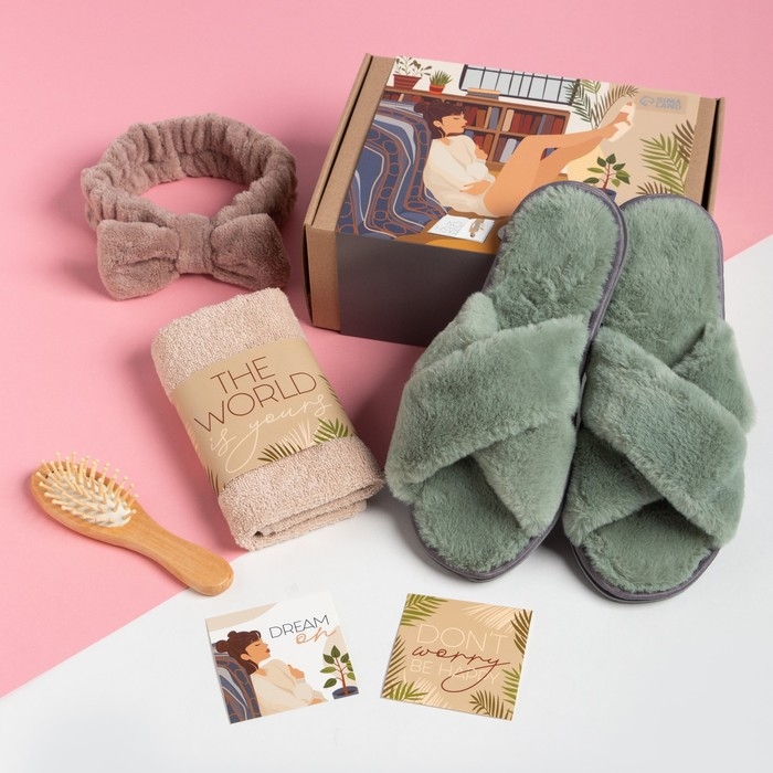 Открытка, Повязка, Полотенце, Расчёска для волос, Тапочки