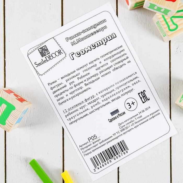 Рамки-вкладыши М.Монтессори «Геометрия», МИКС