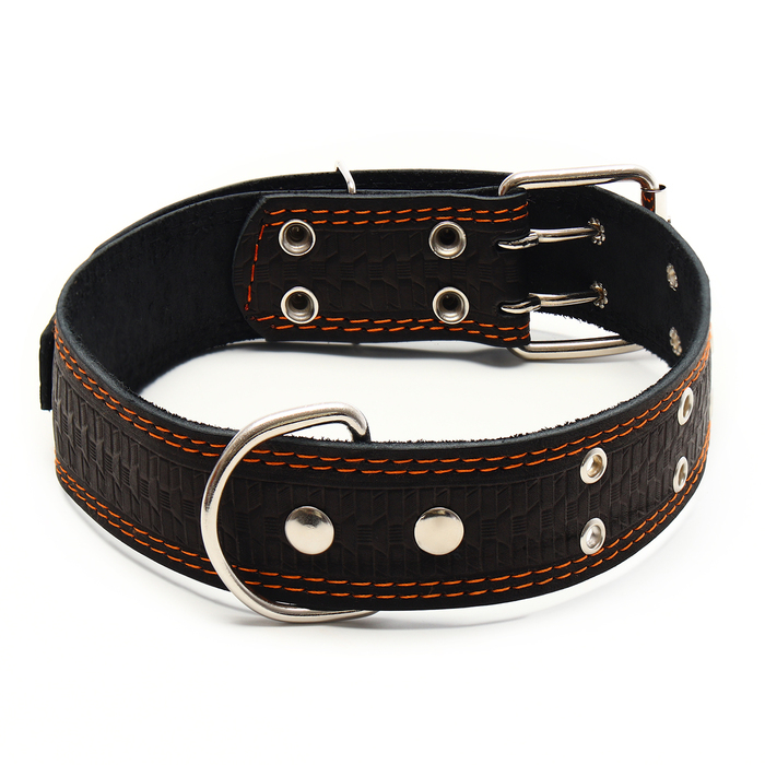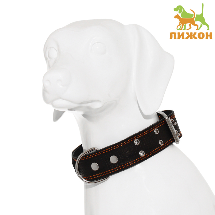 Ошейник кожаный тисненый однослойный, безразмерный, 74 х 4,5 см, ОШ 35-65 см, микс цветов