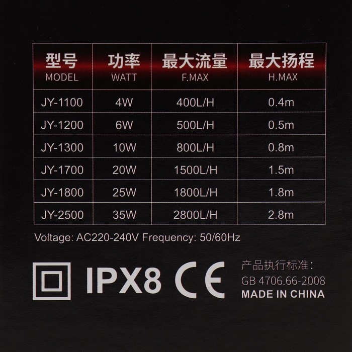 Помпа аквариумная JINGYE JY-1800, 1800 л/ч, 25 Вт, высота подъема воды 1,8 м