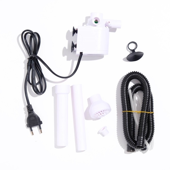В комплект поставки включены: силиконовая трубка-распылитель воздуха, гофрированный шланг для направления течения, два выхода для потока, заглушка.