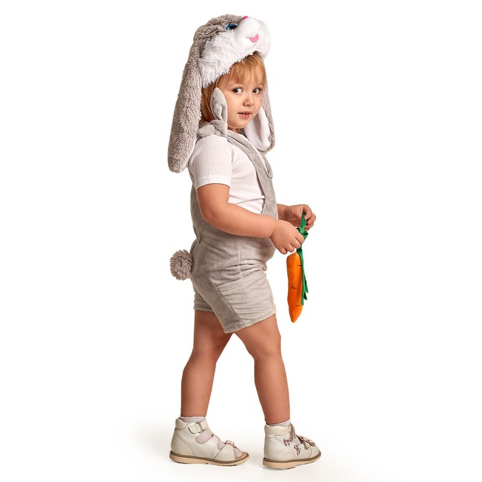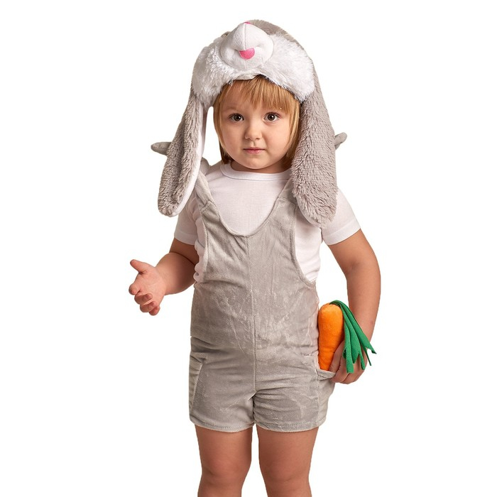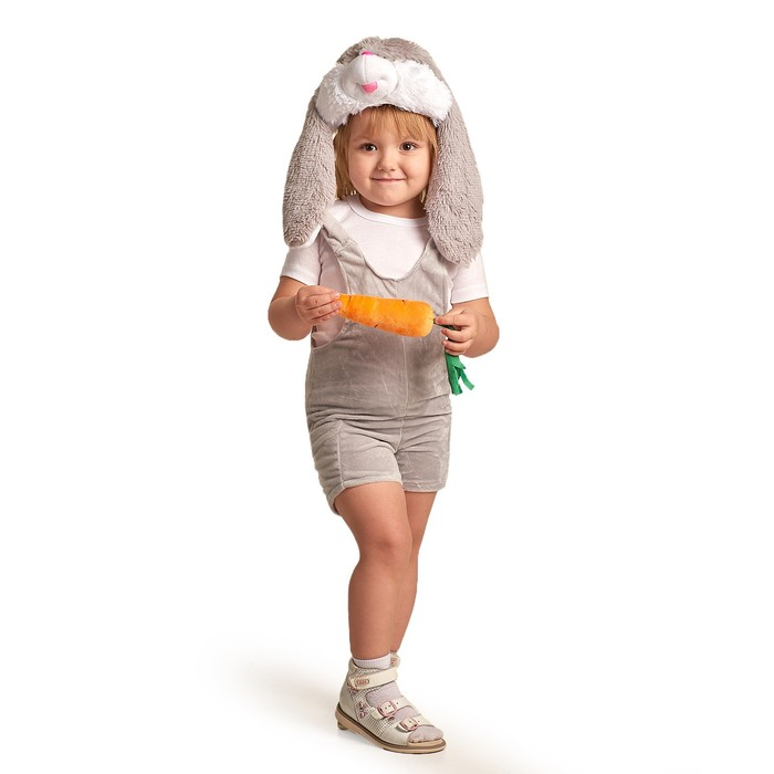Детский карнавальный костюм "Заюша", шапка, комбинезон, мягконабивная морковка, 1-2 года, рост 92 см