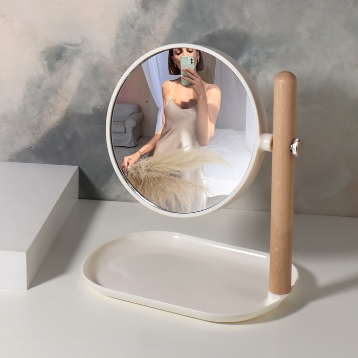 Изящное зеркало — это украшение для туалетного столика. Оно помогает нам ежедневно следить за собой, наносить макияж и поправлять причёску. Подставка станет удобным местом хранения ваших косметических принадлежностей и украшений. Аксессуар гармонично впишется в интерьер и станет его стильным дополнением.