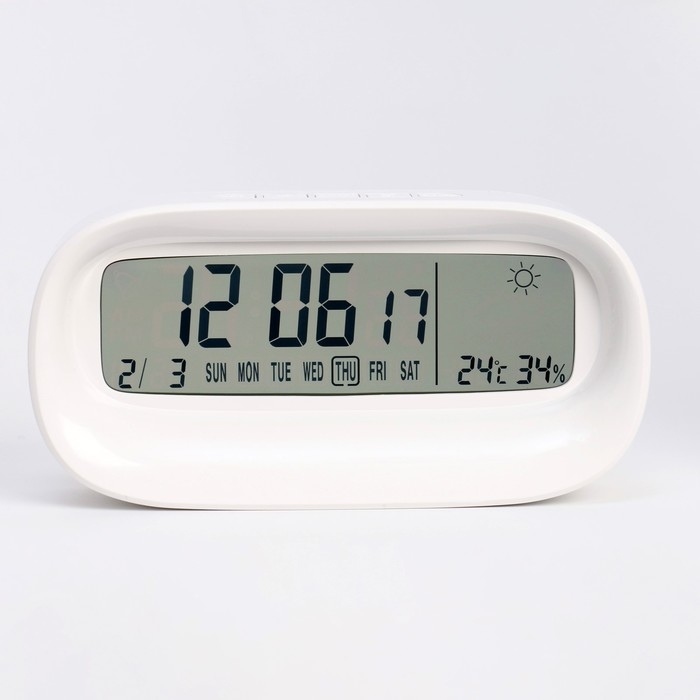 Часы - будильник электронные настольные: календарь, термометр, гигрометр, 16.8 х 6.6 см