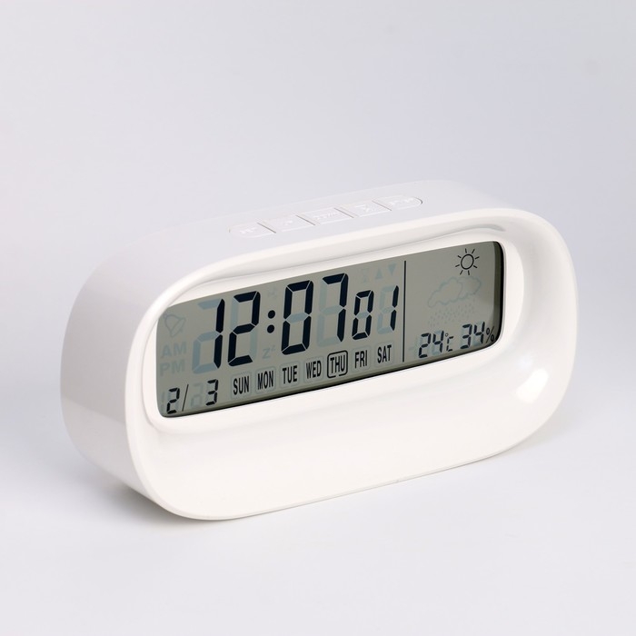 Часы - будильник электронные настольные c термометром, гигрометром, 7 х 14.5 см, 2ААА