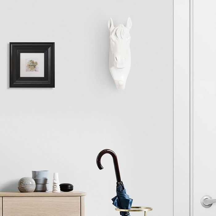 Декор настенный-вешалка "Конь" 12 x 3.8 см, белый