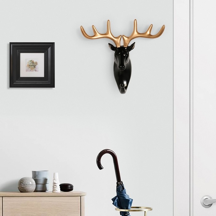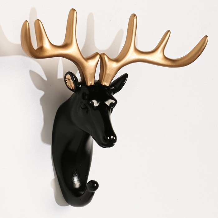 Декор настенный-вешалка "Олень" 16.5 x 16 см, черный