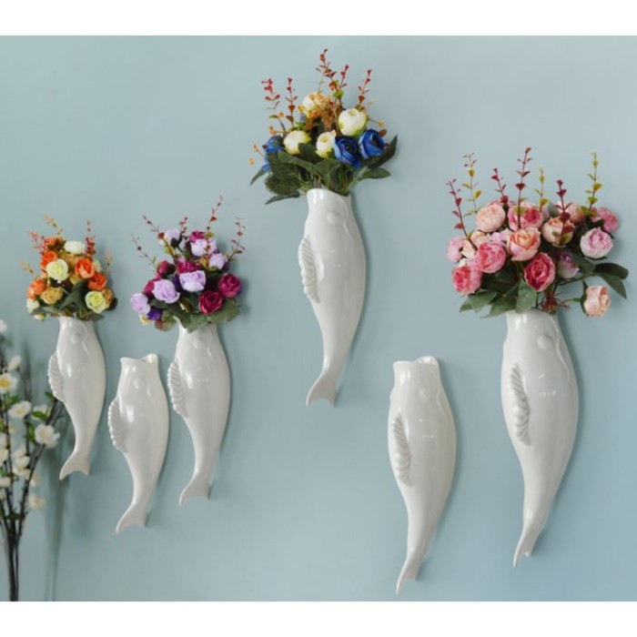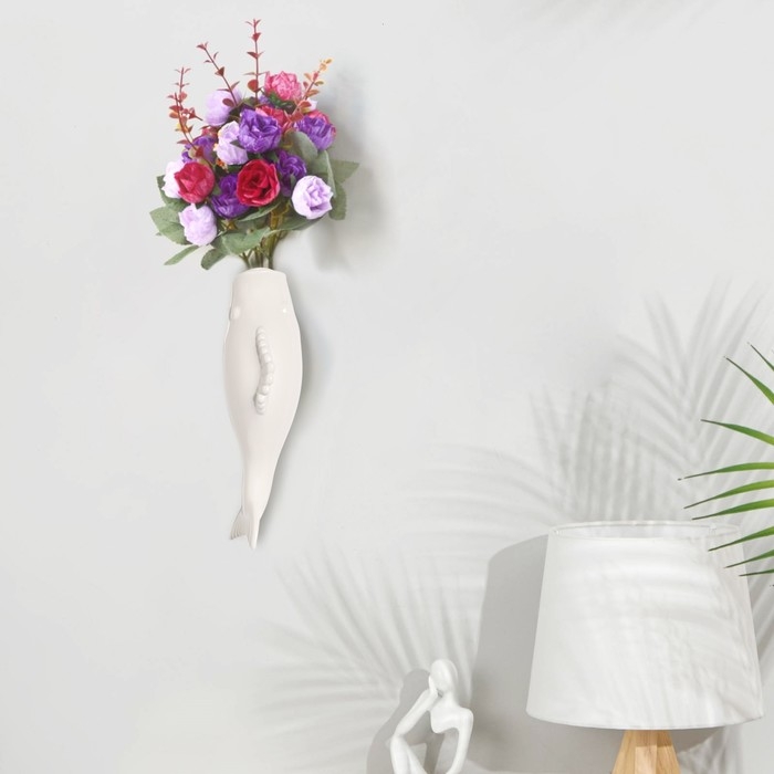 Декор настенный-ваза "Рыбки" 26.2 x 7.3 см, белый