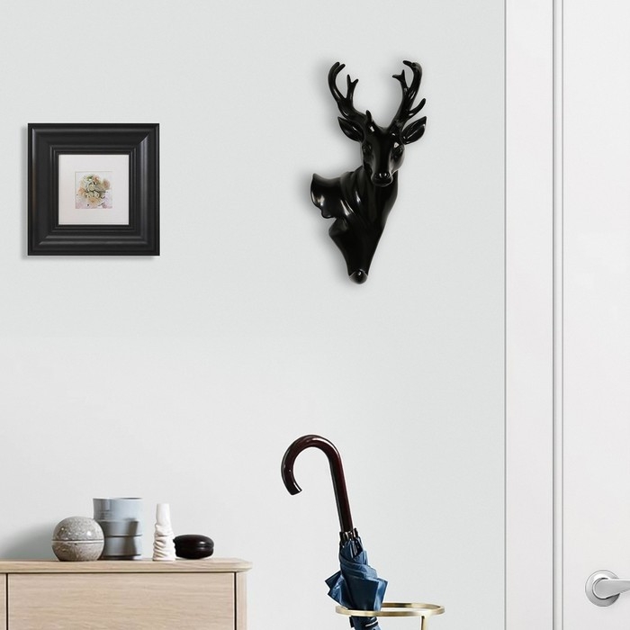 Декор настенный-вешалка "Олень" 30 x 14 см, черный
